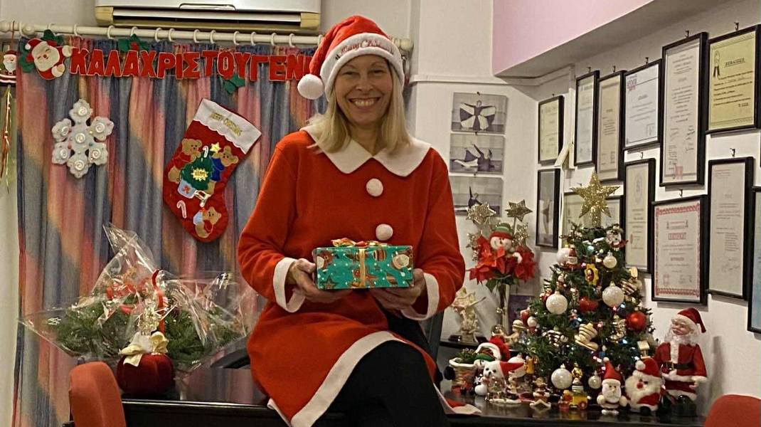 Η καθηγήτρια χορού Δήμητρα Χρηστίδου, σύζυγος του οργανωτικού υπεύθυνου της Εστίας Γνώσης Χαλκίδας Γιάννη Μαρκόπουλου, ντύθηκε Αγιοβασιλίτσα την παραμονή της Πρωτοχρονιάς.