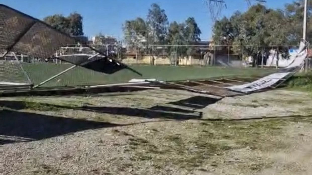 Στην ευρύτερη περιοχή της Χαλκίδας, εκτός από την κολόνα φωτισμού που έπεσε στην Αρτάκη (διαβάστε εδώ), ο αέρας γκρέμισε την περίφραξη του δημοτικού ποδοσφαιρικού γηπέδου στο Πάρκου του Λαού.
