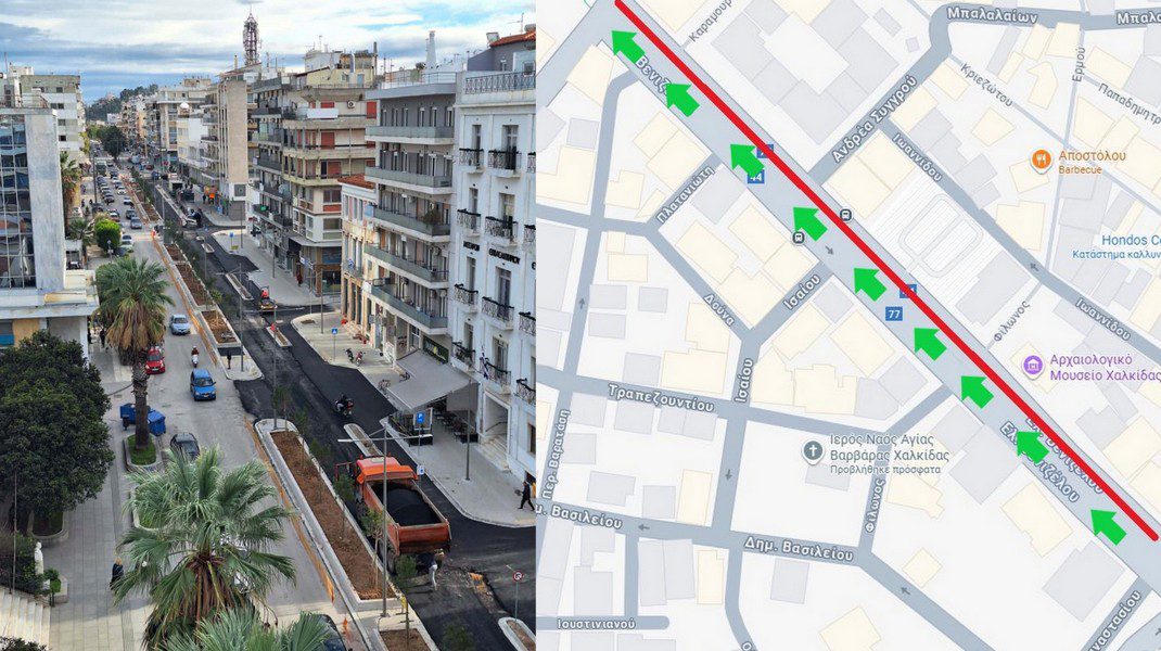 Απαγορεύεται η στροφή οχημάτων από την οδό Αγγελή Γοβιού προς τη Λεωφόρο Ελ. Βενιζέλου, ενώ όσοι εισέρχονται σε αυτή μέσω των οδών Παπαναστασίου, Ισαίου, Πλατανιώτη και Βαρατάση θα μπορούν να κινούνται αποκλειστικά με κατεύθυνση προς την παραλία Χαλκίδας.