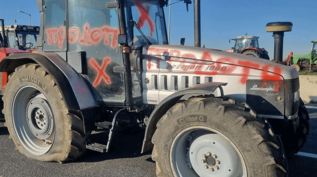 Πιθανότατα άλλοι αγρότες βανδάλισαν τα τρακτέρ τους, αφού βρήκαν τα λάστιχα των οχημάτων σκασμένα. Μάλιστα, οι δράστες έγραψαν με μπογιά τη λέξη «προδότη».