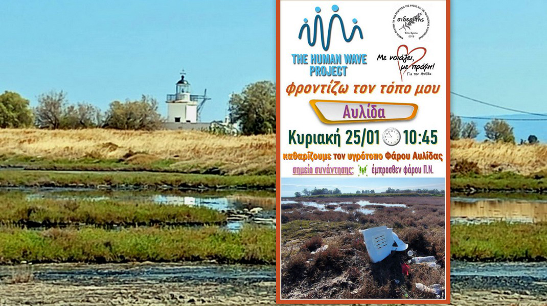 Η ομάδα «The Human Wave Project» και ο Σύλλογος της Χαλκίδας «Σιδερίτης» καλούν τα μέλη τους, τους φίλους, καθώς και κατοίκους και τοπικούς Συλλόγους, να συμμετάσχουν στον καθαρισμό του υγροτόπου του Φάρου, στην Αυλίδα
