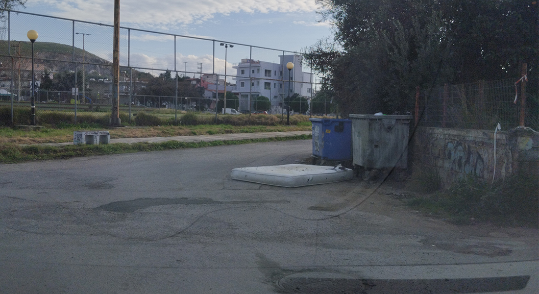 Πιο συγκεκριμένα, παράτησε το στρώμα δίπλα σε κάδους απορριμμάτων στην οδό Μακεδονίας στην περιοχή "Καμάρες", στο γήπεδο "Κουμπιά".