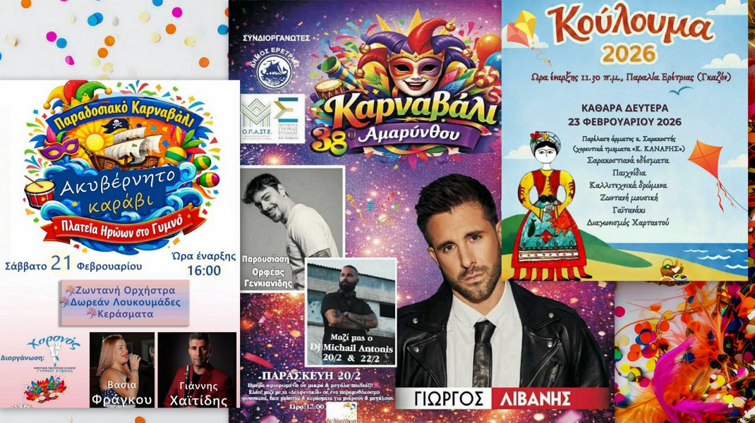 ΔΗΜΟΣ ΕΡΕΤΡΙΑΣ: Τριήμερη αποκριάτικη γιορτή σε Γυμνό, Αμάρυνθο και Ερέτρια