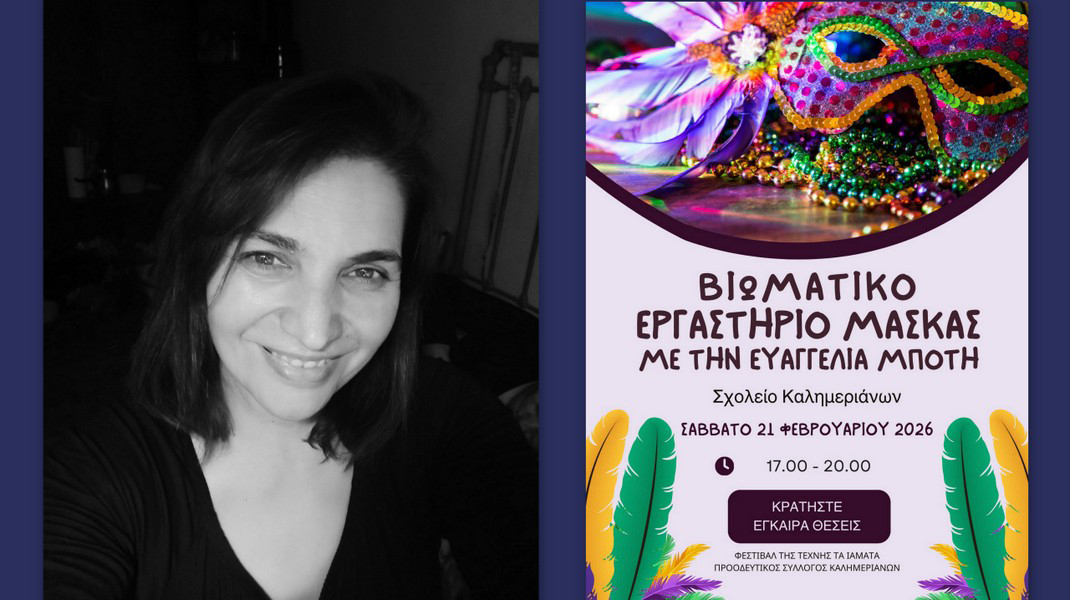 Ένα δημιουργικό ταξίδι στον κόσμο της φαντασίας και της μεταμόρφωσης διοργανώνει ο Προοδευτικός Σύλλογος Καλημεριάνων Εύβοιας, προσκαλώντας παιδιά και ενήλικες σε ένα βιωματικό εργαστήριο κατασκευής αποκριάτικης μάσκας.