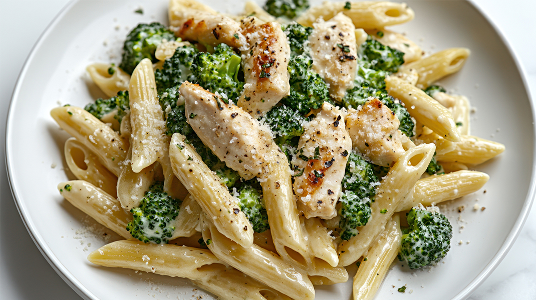 Πένες με κοτόπουλο και μπρόκολο
