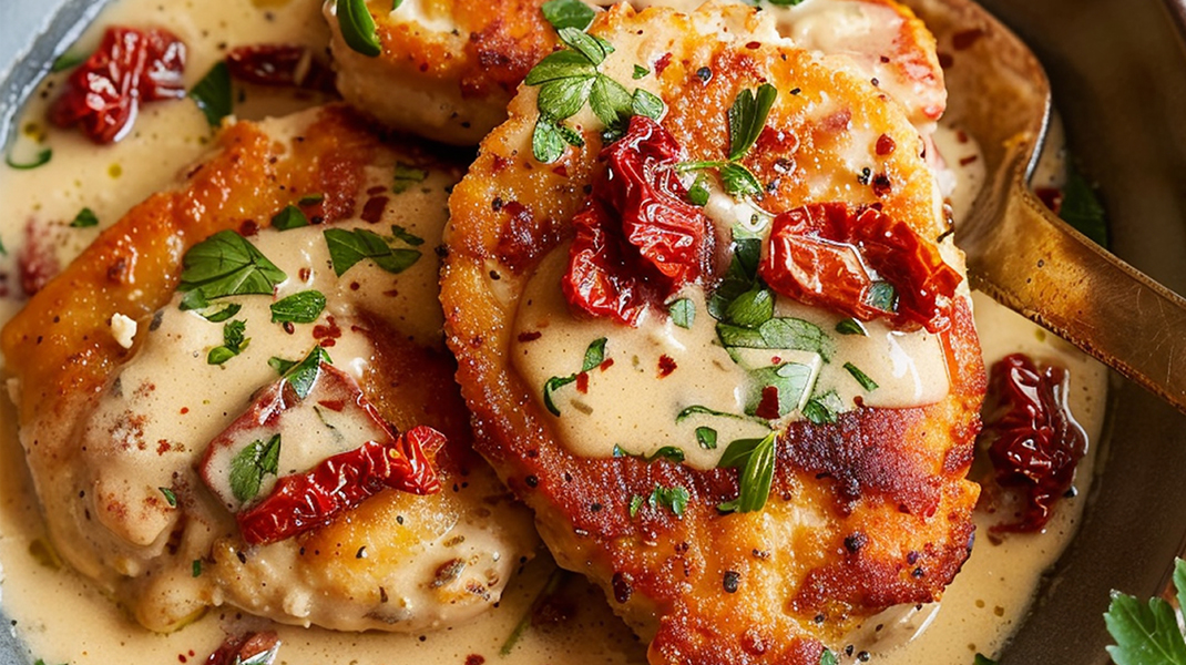 Κοτόπουλο με λιαστή ντομάτα και κρέμα γάλακτος