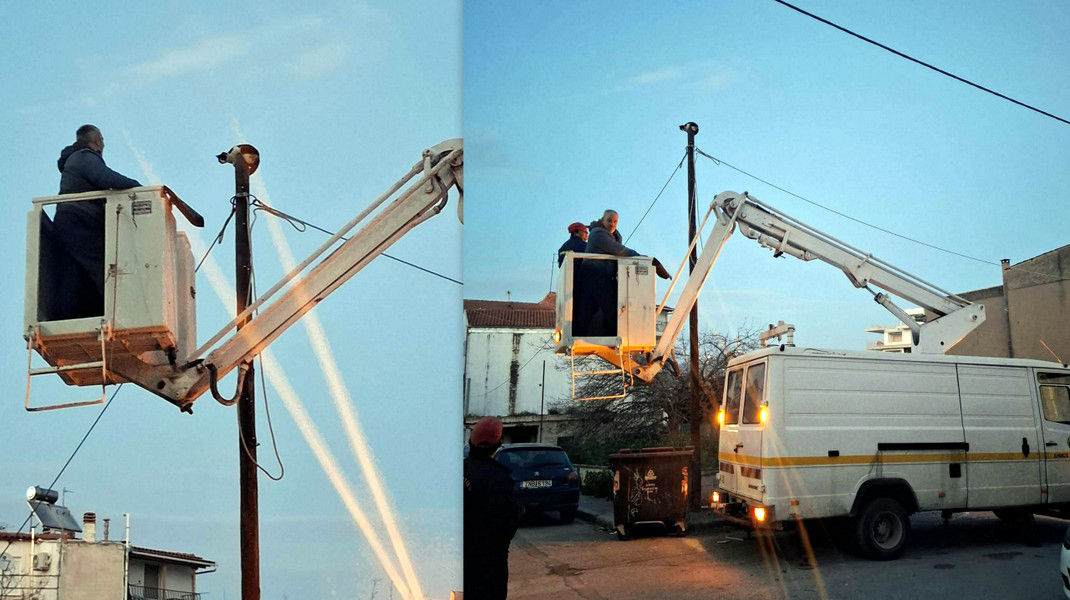 ΧΑΛΚΙΔΑ: Επιχείρηση διάσωσης γάτας σε κολώνα του ΟΤΕ