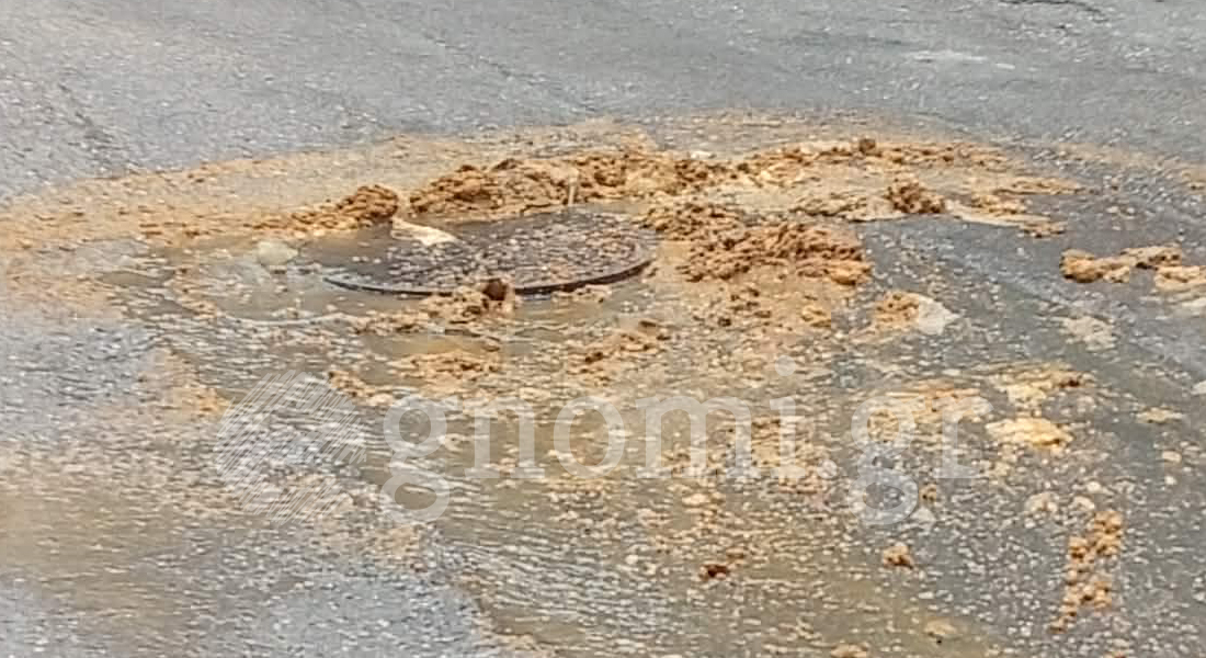 Φρεάτιο της ΔΕΥΑΧ "έσκασε" στις 8 το πρωί της Τετάρτης 18 Μαρτίου και ο δρόμος γέμισε ακαθαρισίες στη συμβολή των οδών Αβάντων και Αποστόλη στη Χαλκίδα, στο σημείο όπου γίνεται η λαϊκή.