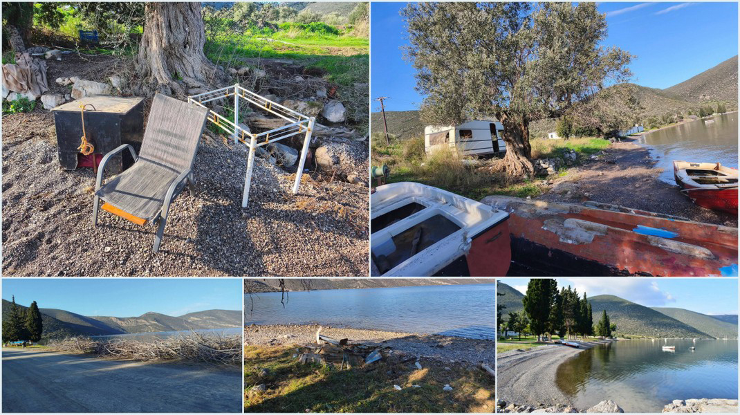 Η κατάσταση είναι απογοητευτική, με συσσωρευμένα ογκώδη απορρίμματα, εγκαταλελειμμένα σκάφη, παράγκες, τροχόσπιτα και κάθε είδους σκουπίδια που παραμένουν για χρόνια.
