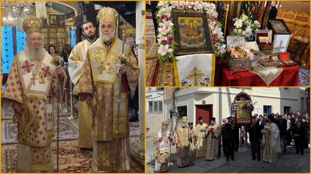 Στις ιερές ακολουθίες προέστησαν ο Μητροπολίτης Χαλκίδος κ. Χρυσόστομος και ο Επίσκοπος Σκοπέλου κ. Νικόδημος, ο οποίος χοροστάτησε στον Όρθρο.
