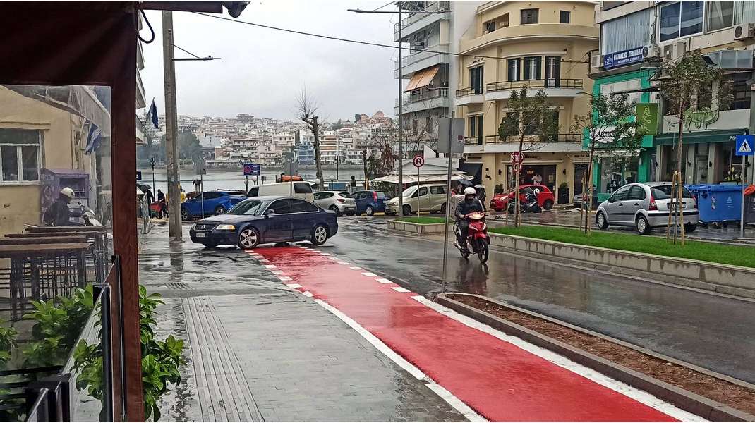 Ωστόσο, ο οδηγός του αυτοκινήτου της φωτογραφίας φαίνεται πως δεν δυσκολεύτηκε ιδιαίτερα να βρει λύση. Επέλεξε να παρκάρει στη συμβολή της λεωφόρου Βενιζέλου με την οδό Βαρατάση, ακριβώς μπροστά στο Εφετείο Εύβοιας, τοποθετώντας το όχημά του κάθετα στον ποδηλατόδρομο.