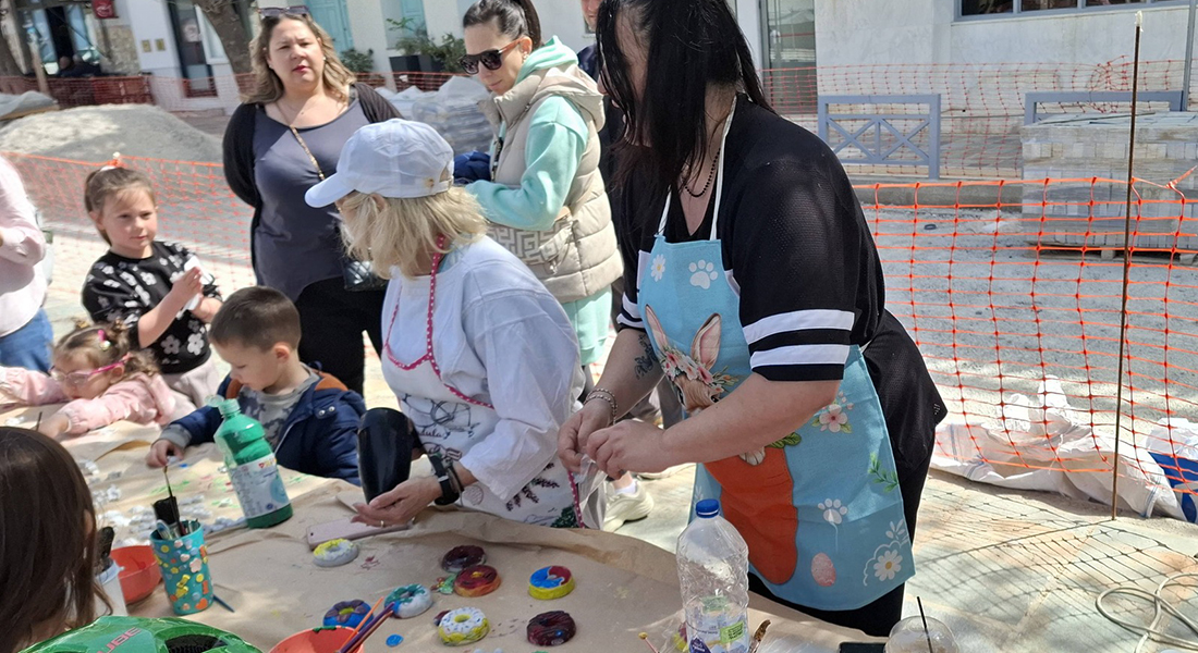 Πασχαλινό Εργαστήρι Ζωγραφικής οργανώθηκε από το δήμο στην πλατεία της Καρύστου, το πρωί της Δευτέρας 13 Απριλίου.