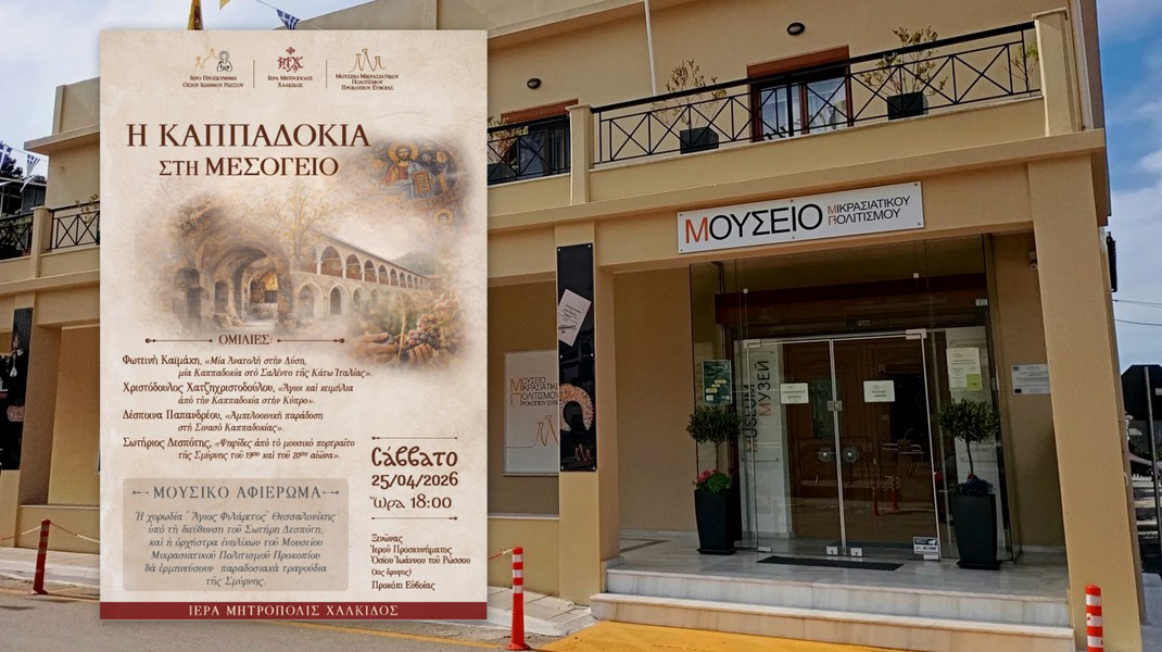 Η Μητρόπολη Χαλκίδος διοργανώνει, το Σάββατο 25 Απριλίου, στις 6 το απόγευμα, πολιτιστική εκδήλωση με τίτλο «Η Καππαδοκία στη Μεσόγειο" στο Προκόπι της Εύβοιας.