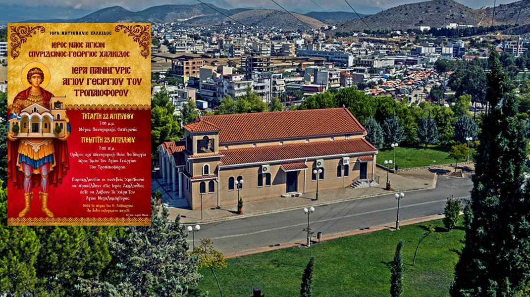 Ο ιερός ναός Αγίων Γεωργίου και Σπυρίδωνος, που βρίσκεται στην συνοικία του Μπαταριά, στη Χαλκίδα, πανηγυρίζει το διήμερο 22-23 Απριλίου ( για την γιορτή του Αγίου Γεωργίου) σύμφωνα με το ακόλουθο πρόγραμμα: