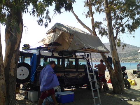 Καλοκαιρινές οι φωτό που μας έστειλε από τον Αλμυροπόταμο μία φίλη του site, αλλά άκρως...επίκαιρες. Οπως βλέπετε, η νέα μόδα δεν επιβάλλει τροχόσπιτο, αλλά σκηνούλα (κάτω) ή σπιτάκι (πάνω) στον ουρανό του αμαξιού!