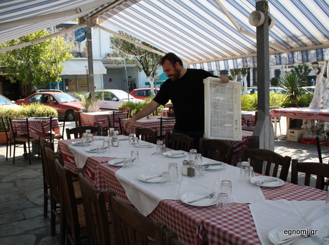 Μπροστά σε ένα ωραίο θέαμα ήρθαμε μέρα μεσημέρι στο μεζεδοπωλείο του Λευτέρη Γιαπιτζή το "Μερακλίδικο". Ο Λευτέρης (ιδιοκτήτης) είχε στρωθεί για τα καλά στη δουλειά και με την παραμάνα παραμάσχαλα, έστρωνε με τα τραπέζια του μαγαζιού του. Υπάλληλο δεν είδαμε και η εικόνα είναι ο αψευδής μάρτυρας ότι υπάρχουν αφεντικά που δεν κομπλάρουν να κάνουν όλες τις δουλειές της επιχείρησης.