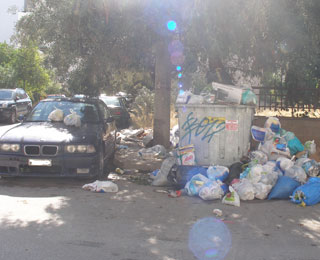 Aπλώς πολλοί δημότες φέρονται σαν γαϊδούρια και τώρα με το σκουπιδομάνι ξεσάλωσαν. Στο παρελθόν έχουν "συλληφθεί" διάφοροι να πετούν τα σκυπίδια στον κάδο από τα μπαλκόνια τους. Tο γαϊδούρι της προκειμένης περίπτωσης, έκανε τον κόπο να πλησιάσει τον κάδο, αλλά ...αστόχησε. Δεν μπόρεσε να ρίξει τις σακούλες απορριμάτων, ούτε πάνω στον κάδο, ούτε πάνω στο διπλανό σωρό. Πέτυχε την BMW του γείτονα, ίσως επειδή την είχε βάλει στο ...μάτι!