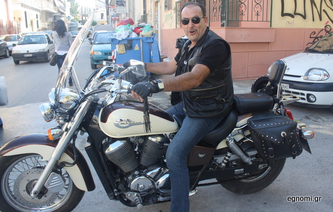 Στη συμβολή των οδών Γκορτζή και Κατσικογιάννη, εντοπίσαμε πάνω σε μία Χάρλεϊ τον μηχανικό αεροσκαφών Βασίλη Βαχαρίδη. Αφού καμαρώσαμε την ...κούκλα του ζητήσαμε ένα σχόλιο για την σημερινή ελληνική πραγματικότητα και ο Βασίλης ξεσπάθωσε λέγοντας: