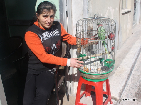 Η Έλενα Λάμπρου απέκτησε τον παπαγάλο της φωτογραφίας πριν από 3,5 χρόνια και από τότε προσπαθεί συνεχώς να τον μάθει να μιλάει, αλλά αυτός έχει αποδειχθεί ανεπίδεκτος μαθήσεως.