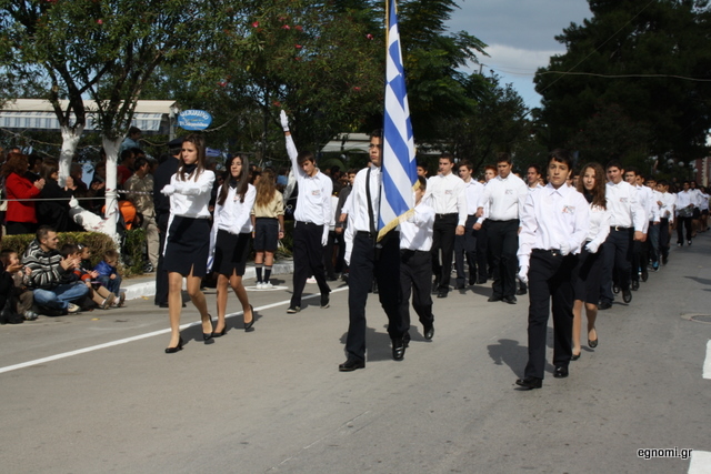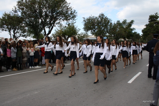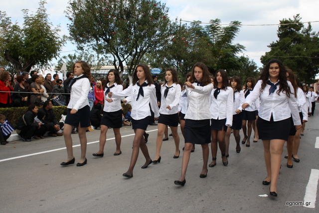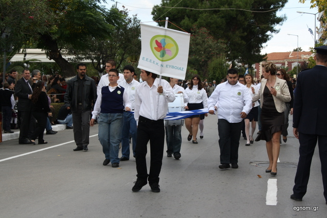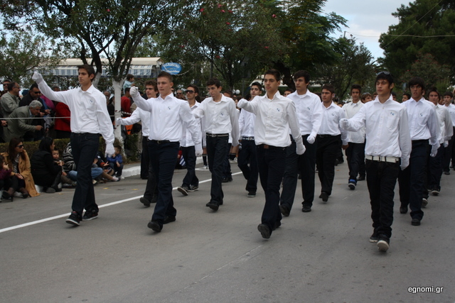 Τους Πεζοναύτες, που τα παλαιότερα χρόνια σκορπούσαν ρίγη συγκίνησης στην παρέλαση, θύμισαν φέτος οι μαθητές και οι μαθήτριες του 1ου Γυμνασίου Χαλκίδας (φωτο πάνω δεξιά). Παρέλασαν με άψογο βήμα και με το δεξί χέρι υψωμένο μέχρι το ...θεό, αποσπώντας το πιο θερμό χειροκρότημα του κόσμου.