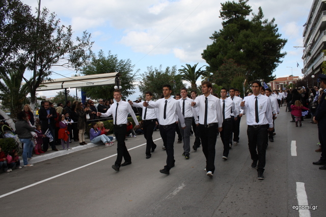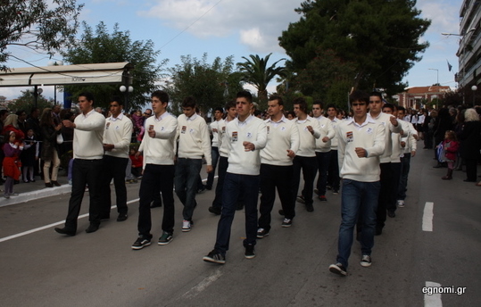 Με το ...αυτοκόλλητο διαμαρτυρίας παρέλασαν και τα αγόρια του 2ου Λυκείου (φωτό κάτω).