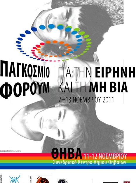 Η ΜΚΟ «Κόσμος Χωρίς Πολέμους και Βία» σάς προσκαλεί στο διήμερο Φόρουμ για την Ειρήνη και τη Μη Βία, που θα πραγματοποιηθεί στο Συνεδριακό Κέντρο του Δήμου Θηβαίων τις ημέρες Παρασκευή 11 και Σάββατο 12 Νοεμβρίου.