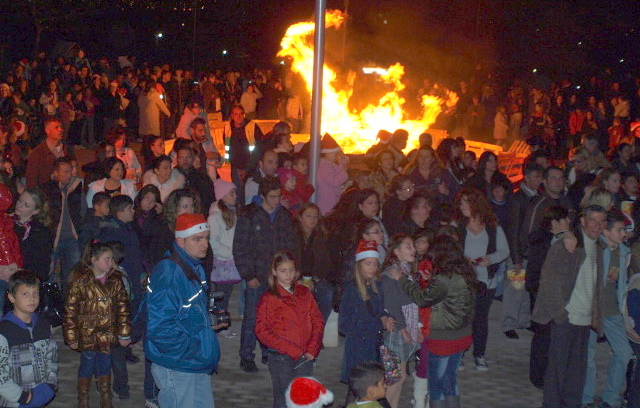 Η μεγάλη φωτιά στη μέση της πλατείας του 3ου Δημοτικού Σχολείου ήταν το επίκεντρο της εκδήλωσης, που πραγματοποιήθηκε την Παρασκευή 16 Δεκεμβρίου, στο "Χριστουγεννιάτικο Χωριό" στο Βασιλικό.