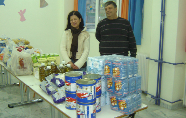 Η προσπάθεια έγινε σε συνεργασία με την δασκάλα, την διεύθυνση του σχολείου και τον σύλλογο γονέων και κηδεμόνων. Στη φωτογραφία τα τρόφιμα, που συγκεντρώθηκαν στο χώρο του σχολείου.