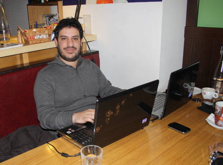 Έπινε χαλαρός τον καφέ του όταν τον πετύχαμε ο Γιώργος Λαδάς κι έτσι εξίσου χαλαρά "έπαιζε" με τα δύο lap top του. Φοιτητής υπολογιστών βλέπετε, δεν του είναι και τίποτα να τιθασεύσει δύο υπολογιστές. Κι αν έχετε απορία να μάθετε τι ακριβώς κάνει, ο ίδιος μας είπε ότι ετοιμάζεται να δημιουργήσει ένα δικό του video game.