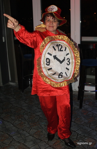 Στη δικηγόρο Αγγελική Καρατζά που ντύθηκε ρολόι τοίχου για να μη χρειάζεται να κοιτάζει συνεχώς το ρολόι της.