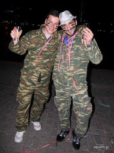Στον Γιώργο Κουφοχρήστο (λοχία όχι μόνο για τις Απόκριες, αλλά και στη ζωή) και τον Νίκο Μανούσο που ντύθηκε φανταράκι. Μια φιλία που γεννήθηκε εντός στρατοπέδου και συνεχίζει και εκτός.