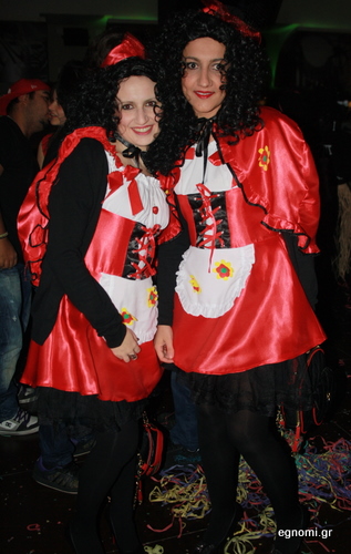 Στις κοκκινοσκουφίτσες Τάνια Αποστόλου και Δήμητρα Ντελέκου. "Φέτος θέλουμε να είμαστε καλές και σεμνές, όπως η κοκκινοσκουφίτσα".