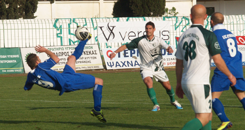 Ο Βασίλης Ανέστης των Λουκισίων και πρώην παίχτης του Ηρακλή προσπάθησε να βάλει γκολ στον Τόλιο με ψαλιδάκι αλλά δεν τα καταφερε.