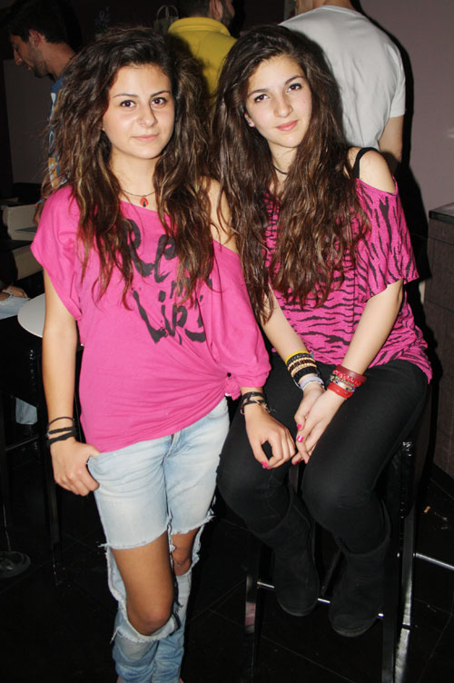Σαν δυο σταγόνες νερό μοιάζουν οι κολλητές Εβελιν Σαρμά και Αργυρώ Βλάχου. Ιδια μαλλιά, ίδια μπλουζάκια, ίδια βραχιόλια, το μόνο που τελικά κάνει τη διαφορά είναι το σούπερ σκίσιμο στο τζιν της Εβελιν. Να φανταστώ ότι της Αργυρώς δεν της αρέσει, ή κρύωνε και είπε να βάλει το παντελόνι ολόκληρο;;;