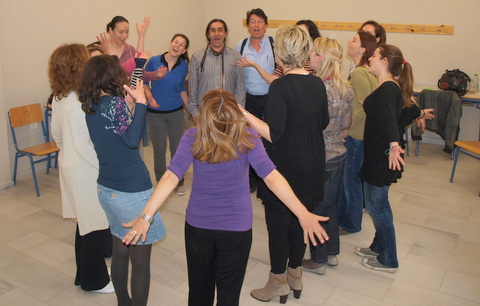 Οι συμμετέχοντες εκπαιδευτικοί παρακολούθησαν εργαστήρια που αφορούσαν τεχνικές του Θεάτρου του Καταπιεσμένου του Boal, την τέχνη της μυθοπλασίας, τη δημιουργική γραφή με παιδιά, την κινηματογραφική γραφή, το θεατρικό παιχνίδι.