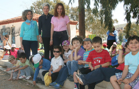 Τα παιδιά πλαισιώνουν τη διευθύντρια των Δημοτικών Παιδικών Σταθμών, Στέλλα Μουτσάτσου, η οποία, σε συνεργασία με τη Γεωτεχνική Υπηρεσία του Δήμου, είχε την πρωτοβουλία για τη δημιουργική δραστηριότητά τους. Δίπλα της οι κυρίες Τασούλα Ψυχογιού-Μακαρόνα και Νανά Σκόνδρα -Λαγού.