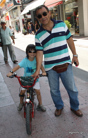 Με το γιο του Αλέξη, που οδηγούσε ποδήλατο, φωτογραφίσαμε στην οδό Αβάντων τον απόστρατο υποστράτηγο Νικηφόρο Φασουλή, ο οποίος μας μίλησε για τα σχέδια του Δήμου σχετικά με την πεζοδρόμηση της Αβάντων και τόνισε:
