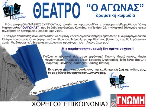 Ενα ξεχωριστό έργο γραμμένο από έναν άνθρωπο με υψηλή αίσθηση του χιούμορ ανεβαίνει στο Κάστρο της Κανήθου αυτή την εβδομάδα. Πρόκειται για τον "Αγώνα" του ηθοποιού και υπεύθυνου της Εστίας Γνώμης Χαλκίδας Γιάννη Μαρκόπουλου.