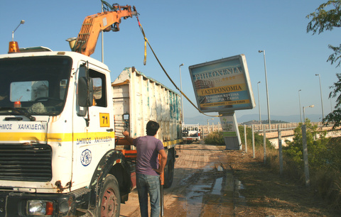 Ξήλωσαν δύο διαφημιστικές πινακίδες στην υψηλή γέφυρα Χαλκίδας