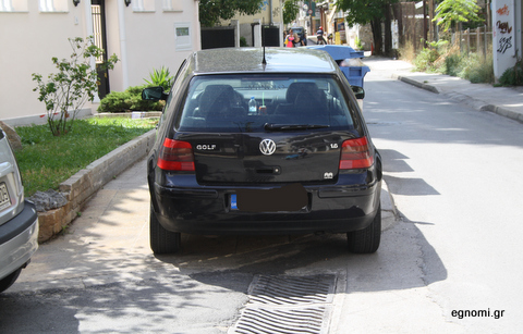 Δείτε στη φωτό πάνω τον οδηγό του μαύρου GOLF πως έχει παρκάρει στη συμβολή των οδών Κακαρά και Αγγελάτου, πάνω στο πεζοδρόμιο. Και να φανταστείτε ότι 50 μέτρα πιο κάτω υπάρχουν δύο πάρκινγκ!