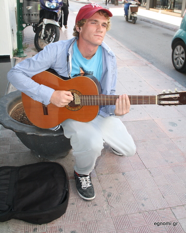 Καλλιτέχνης είναι ο Θανάσης Καρλής και πρόσφατα ξεδίπλωσε το ταλέντο του στο πεζοδρόμιο της οδού Αβάντων, όπου έπαιξε ένα δικό του τραγούδι, με τίτλο: " Η ζωή είναι ωραία και ας έχει βάσανα μοιραία".
