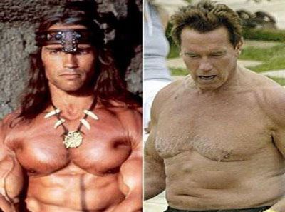 Ωστόσο, όπως βλέπετε και στη συγκριτική φωτογραφία του τότε και του τώρα, ο χρόνος είναι αμείλικτος και έχει αφήσει ανεξίτηλα σημάδια στο σώμα του Σβαρτσενέγκερ, ο οποίος την εποχή που "γύρισε" τον πρώτο "Κόναν" είχε ανακηρυχτεί "Μίστερ Υφήλιος" σε διαγωνισμό body building.