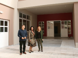 Στη φωτογραφία η πρόεδρος της Δημοτικής Σχολικής Επιτροπής Πρωτοβάθμιας Εκπαίδευσης Ελένη Αϊδίνη, με τη διευθύντρια Βάνα Παλαιού και τον πρόεδρο του Συλλόγου Γονέων Νίκο Μαργαρίτη, στην είσοδο του κτηρίου του Ειδικού Σχολείου.