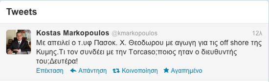 Ο βουλευτής Κώστας Μαρκόπουλος, όμως, φαίνεται ότι δεν πτοήθηκε από την απειλή της αγωγής. Πέρασε στην αντεπίθεση, με ένα σχόλιο του στο twitter, που μπλέκει στη διαμάχη και την περιβόητη Torcaso!