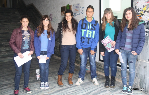Στη φωτογραφία εικονίζονται από αριστερά οι Κωνσταντίνα Νικολάου, Στέλλα Τομαρά, Νεφέλη Ρέππα, Κώστας Παύλου, Δήμητρα Τσιρογιάννη και Ευτυχία Παρίση. Είναι όλοι τους μαθητές του 7ου Γυμνασίου Χαλκίδας και συμμετείχαν σε εθελοντική δράση, που πραγματοποιήθηκε στην αίθουσα της ΔΗΚΕΧ ( Αβάντων 50).
