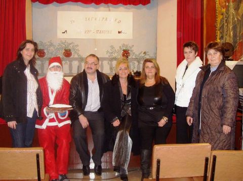 Στη φωτογραφία από αριστερά η αντιπρόεδρος του Συλλόγου Νικολέτα Πολύχρονου, ο Αη Βασίλης ( κατά κόσμο Πάνος Πουλάκης), ο, πρόεδρος Βαγγέλης Τουζούν και τα μέλη του Δ.Σ. Αλεξάνδρα Μόσχου, Νικολέτα Καράπα, Γιώτα Κατσαρή και Δέσποινα Πορτοκαλίδου.)