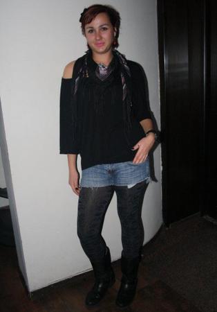 Η Αλεξάνδρα λοιπόν συνδύασε τζιν σορτσάκι με μαύρο χαλαρό τοπ και φουλάρι με κρόσια γύρω από το λαιμό.