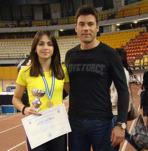 Ενα ακόμη χρυσό μετάλλιο πρόσθεσε στη συλλογή της η Αναστασία Μαρινάκου (φωτό δεξιά μαζί με τον προπονητή Κώστα Μαρκόπουλο) που το συνδύασε με Πανελλήνιο ρεκόρ κορασίδων κλειστού στίβου
