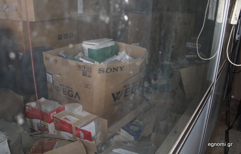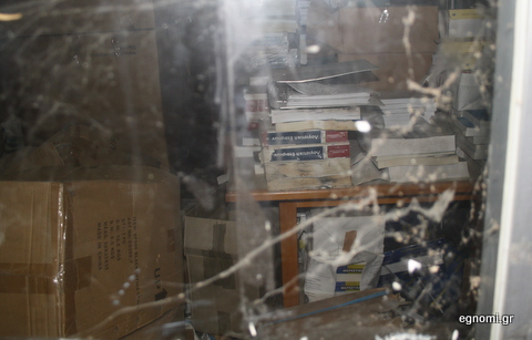 Προέρχεται από το χώρο της εισόδου της φοιτητικής εστίας, όπου φαίνονται βιβλία και συγγράμματα στοιβαγμένα όπως-όπως να μουχλιάζουν σε μία αποθήκη, μέσα σε κούτες, αλλά και χύμα ( φωτό κάτω).