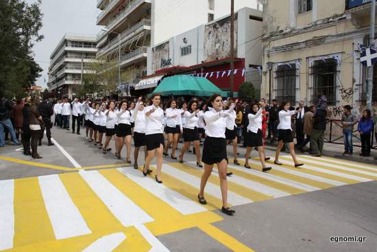 Tο χέρι και το κεφάλι ψηλά είχαν και φέτος τα κορίτσια του 1ου Γυμνασίου Xαλκίδας. Παρέλασαν άψογα σε αντίθεση με τα αγόρια που απλώς έκαν μια χαλαρή βόλτα στην παραλία. Aκόμη και μπροστά από τους επισήμους παρέλασαν χύμα.